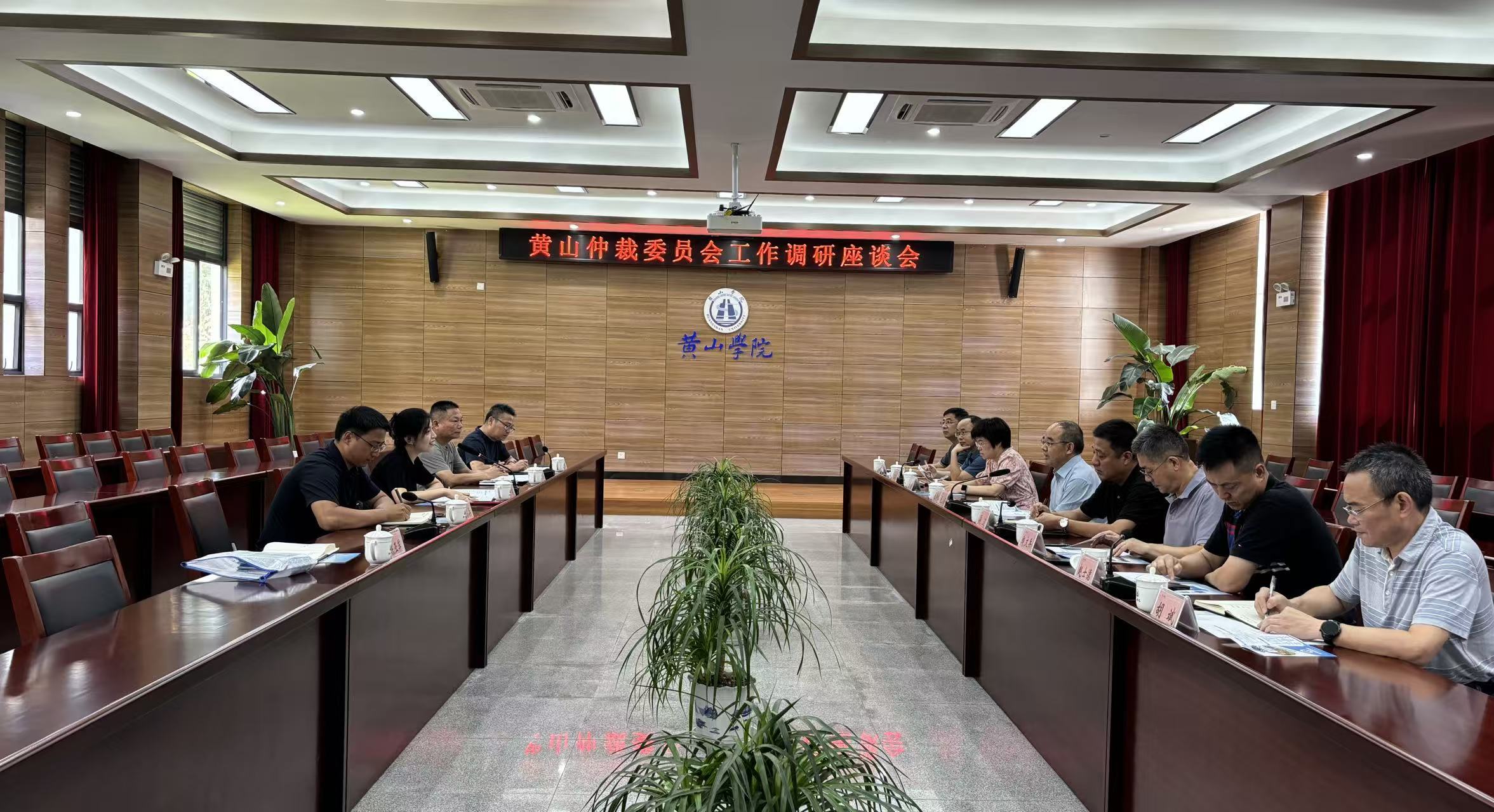近日,黄山市司法局政治部主任汪航、黄山仲裁委员会秘书长汪小兵一行赴黄山学院,就仲裁员队伍建设工作开展调研座谈。校党委委员、副院长张小明主持会议,学校法治工作办公室、人事处、总务处及相关学院负责人参与座...