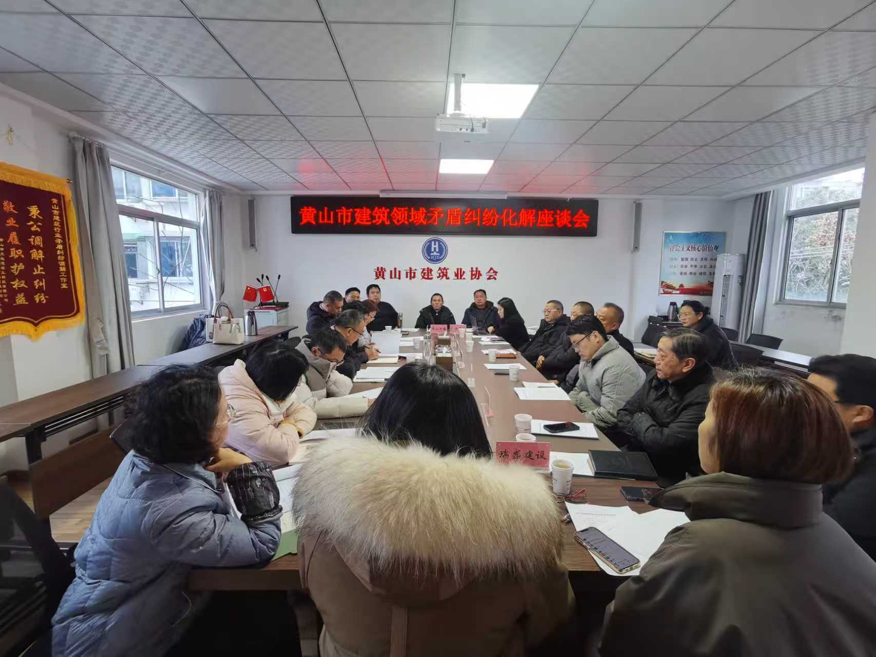 1月21日,黄山市建筑领域矛盾纠纷化解座谈会在市建筑业协会召开,黄山仲裁委员会受邀参加。